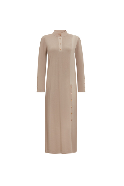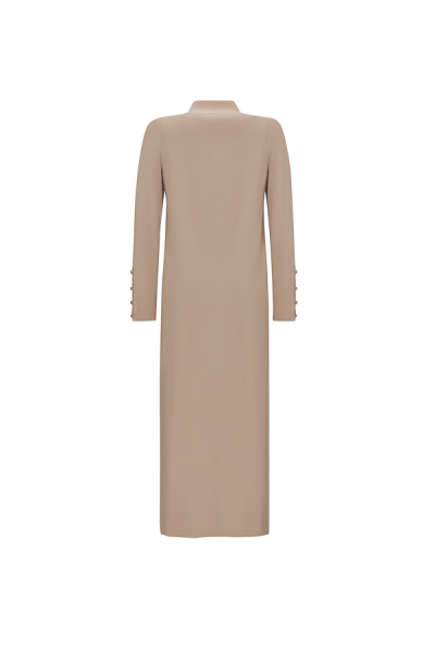 Dik Yaka Düğme Detaylı Taş Rengi Elbise