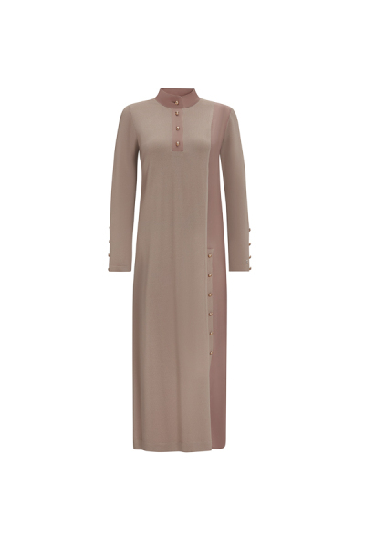 T25Y-4023 Dik Yaka Düğme Detaylı Elbise 1237-MİNK