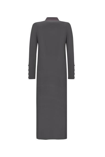 Dik Yaka Düğme Detaylı Antrasit Elbise