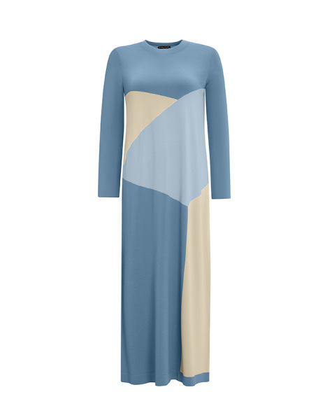 Renkli Geometrik Desenli Triko Mavi Elbise