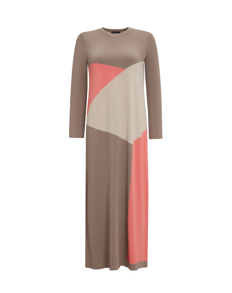 T25Y-4025 Renkli Geometrik Desenli Triko Elbise 1237-MİNK