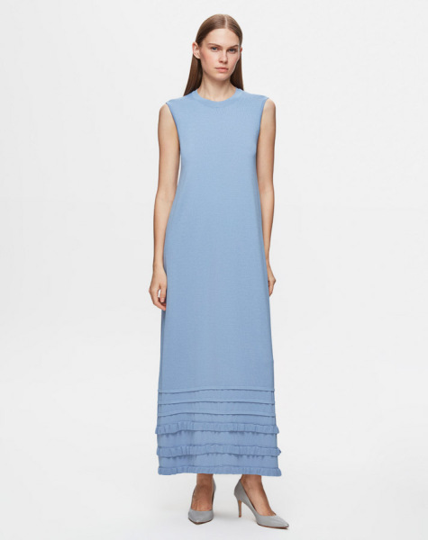 T25Y-4027 Etek Ucu Fırfırlı Kolsuz Triko Elbise 1112-LAVENDER