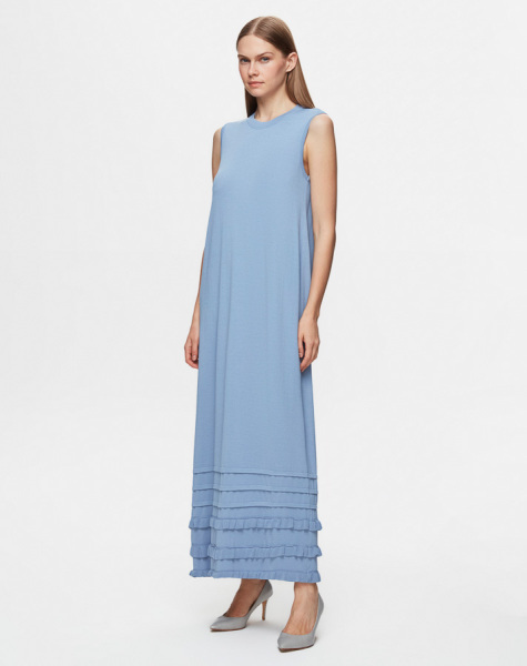 Etek Ucu Fırfırlı Kolsuz Triko Lavander Elbise