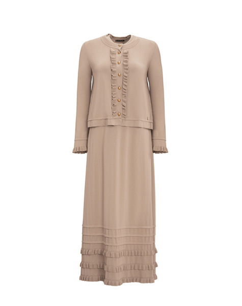 T25Y-4027 Etek Ucu Fırfırlı Kolsuz Triko Elbise 1147-STONE