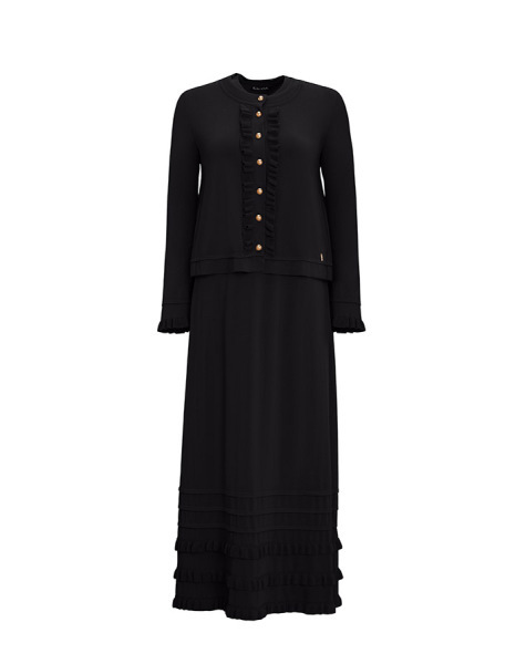 T25Y-4027 Etek Ucu Fırfırlı Kolsuz Triko Elbise BLACK