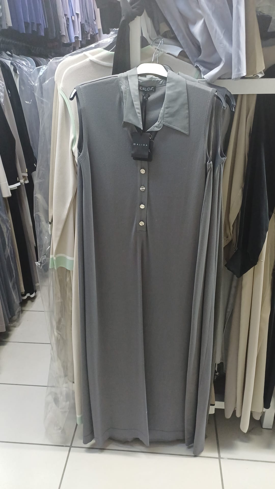 Gömlek Yaka Düğmeli Kolsuz Antrasit Elbise
