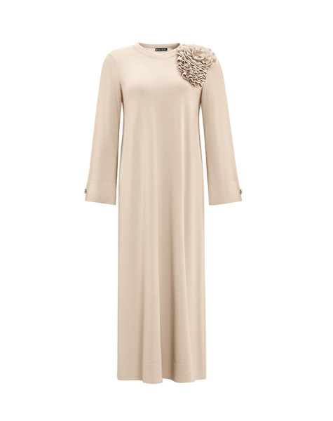 T25Y-4030 Düz Renk Basic Triko Elbise 1021-SAND