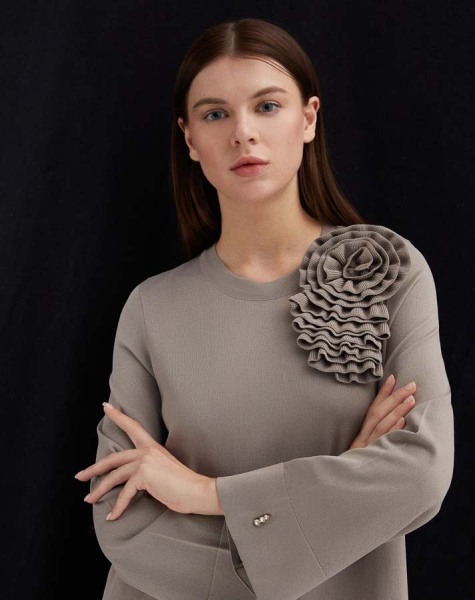Yaka ve Bilek Detaylı Triko Elbise Gri