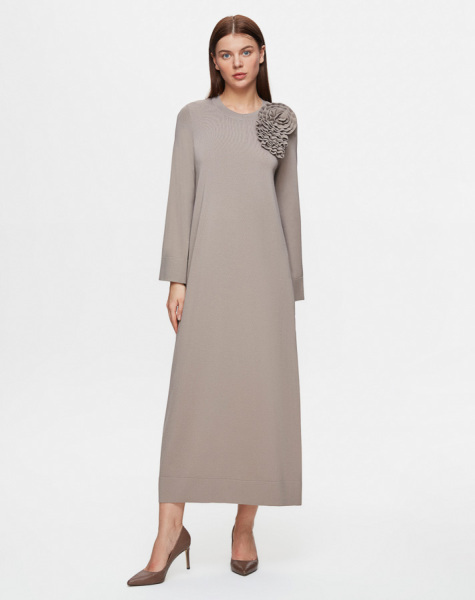 Düz Renk Uzun Kollu Cupro Elbise Gri