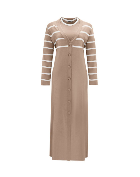 T25Y-4031 Yakası Renkli Kolsuz Triko Elbise 1147-STONE