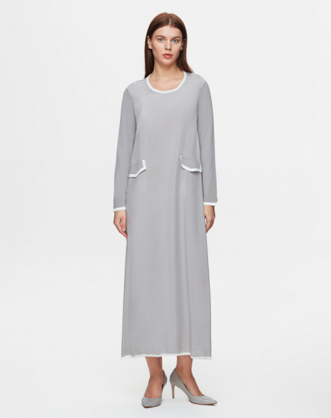T25Y-4032 Cep Kapaklı Cupro Elbise 1179-GREY