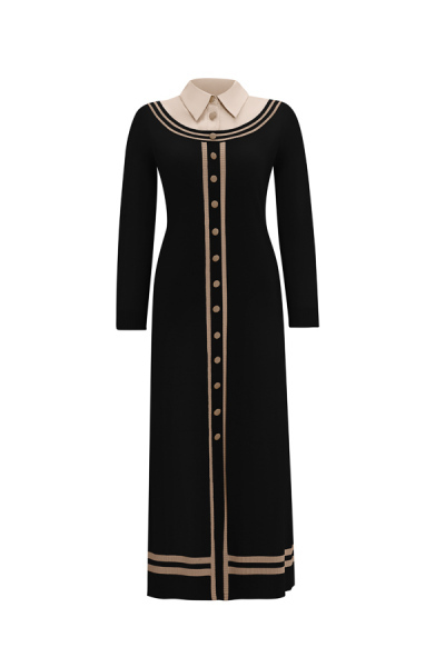 Poplin Gömlek Yaka Detaylı Triko Siyah Taş Rengi Elbise