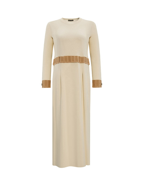 T25Y-4039 Ajur Detaylı Triko Elbise 1412-BUTTER
