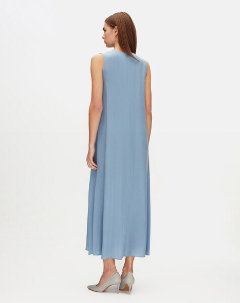 İpeksi dokulu vegan cupro kumaştan üretilen bu kolsuz uzun elbise, dökümlü yapısıyla hem tek başına hem iç astar olarak kullanılabilir. Hafifliği ve yumuşak yüzeyiyle cildinize nazikçe temas eder, şıklığı konforla buluşturur. Transparan elbiseler ve tunik altları için ideal tamamlayıcıdır.