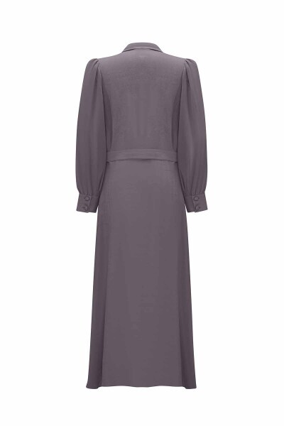 T25Y-4044 Kemerli Cupro Gömlek Yaka Elbise ANTHRACITE