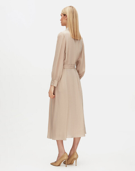 Kemerli Cupro Gömlek Yaka Taş Rengi Elbise