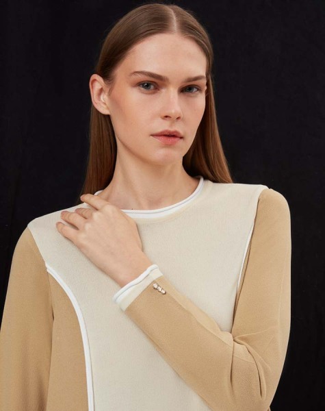 T25Y-4050 Renk Bloklu Triko Elbise 1241-CAMEL