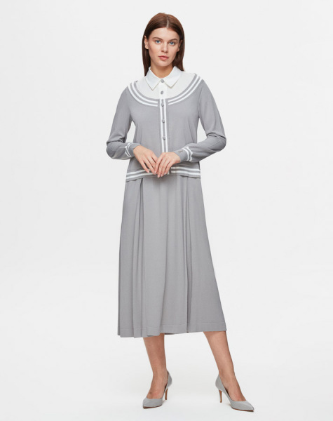 T25Y-4054 Gömlek Yaka Detaylı Triko Elbise 1179-GREY