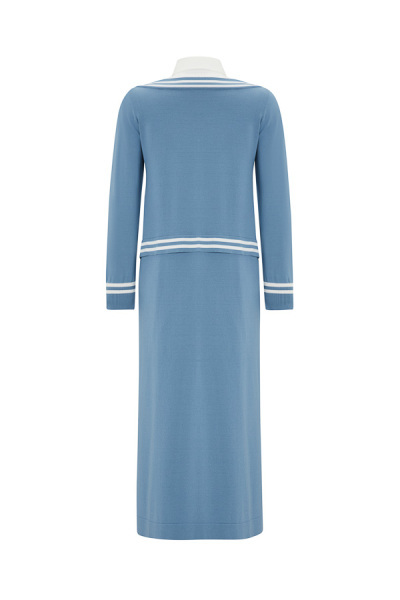 Gömlek Yaka Detaylı Triko Mavi Elbise