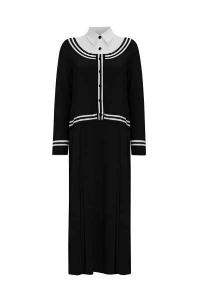 T25Y-4054 Gömlek Yaka Detaylı Triko Elbise BLACK