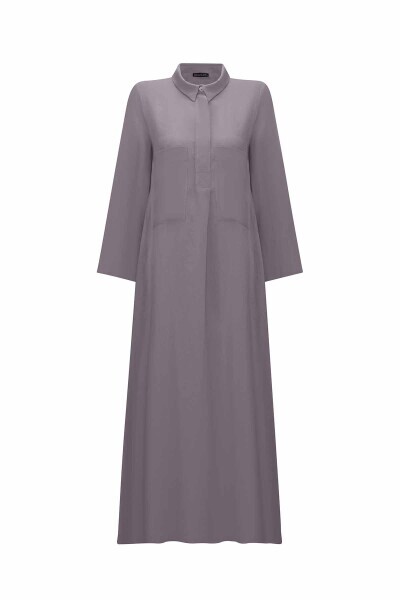 Dik Yaka Düğme Detaylı Antrasit Elbise