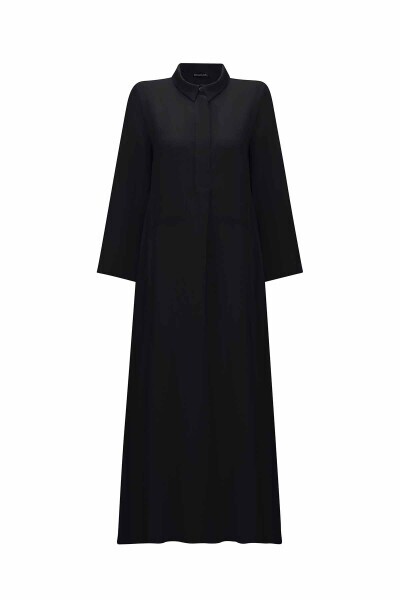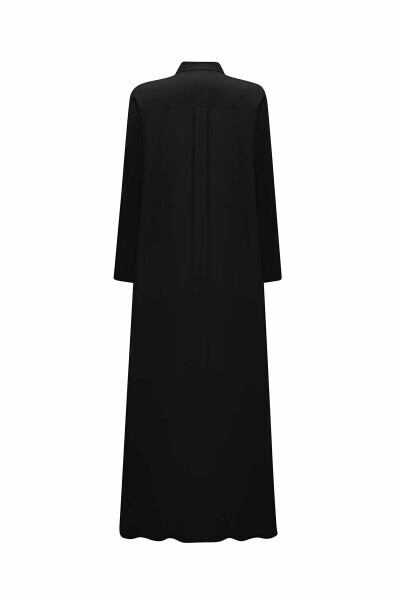 Cepli Düz Renk Keten Gömlek Siyah Elbise