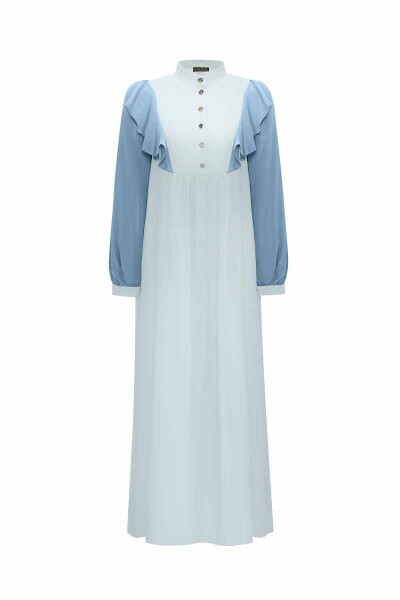T25Y-4061 Yaka Detaylı Keten Cupro Elbise BLUE