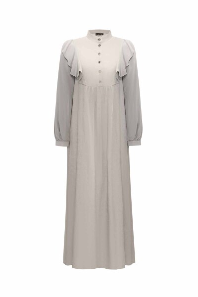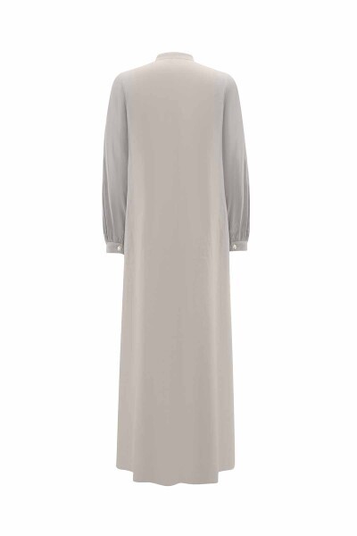 T25Y-4061 Yaka Detaylı Keten Cupro Elbise GREY