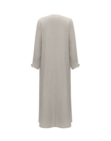 Uzun kollu ve düz renkli tasarımıyla sade şıklığı temsil eden bu keten elbise, omuz kısmındaki aksesuar detayıyla modern bir hava kazanıyor. Nefes alabilen kumaşı sayesinde yaz aylarında rahatlıkla tercih edilebilir. Minimal stilinize iddialı bir dokunuş katar.