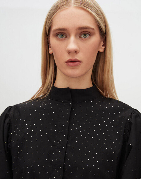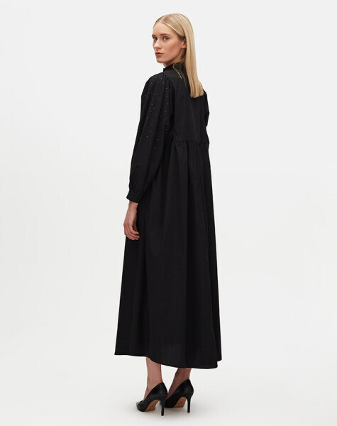 Taş Detaylı Karpuz Kollu Pamuklu Siyah Elbise