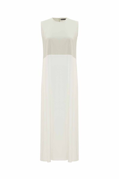 Renk Detaylı Kolsuz Triko Gri Elbise