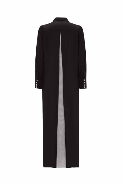 T25Y-4023 Dik Yaka Düğme Detaylı Elbise 1179-GREY