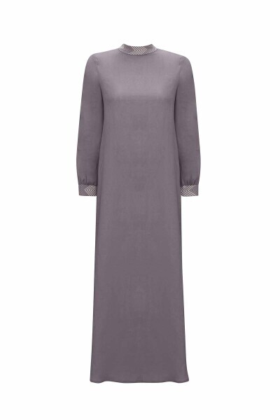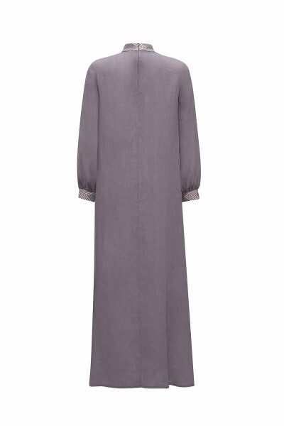 Yakası ve Bileği Triko Detaylı Keten Antrasit Elbise