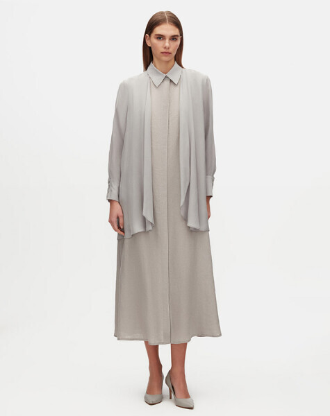 Düz Renk Uzun Kollu Cupro Elbise Gri