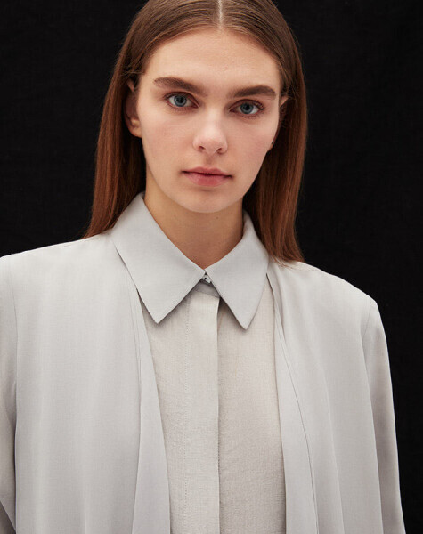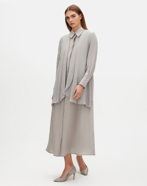 T25Y-4074 Cupro Yaka Detaylı Keten Elbise GREY