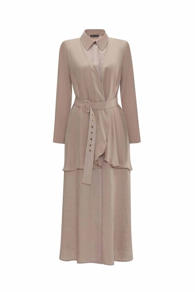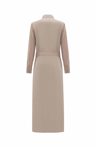 T25Y-4074 Cupro Yaka Detaylı Keten Elbise MİNK