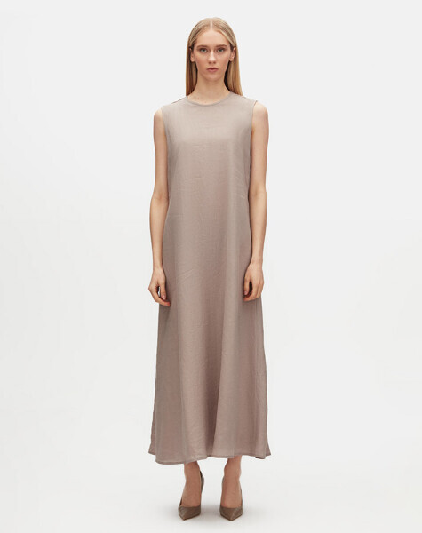 T25Y-4077 Düz Renk Keten Kolsuz Elbise STONE
