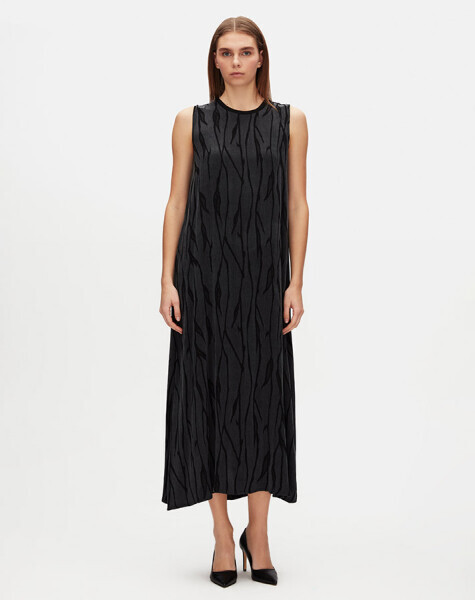 Zarafeti ve dokusuyla dikkat çeken jakarlı cupro kolsuz elbise, asil duruşuyla özel günlerin yıldızı olmaya aday. Hafif dokusu sayesinde gün boyu konfor sağlarken, jakarlı desen detayı elbiseye sofistike bir hava katıyor. Asimetrik etek ucu ve dökümlü kesimiyle hem şık hem modern bir görünüm sunar.