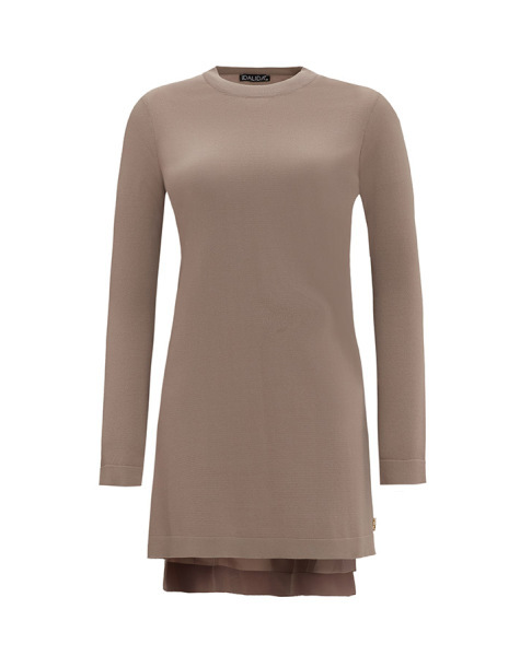 Arkası Cupro Önü Gül Broşlu Triko Vizon Tunik