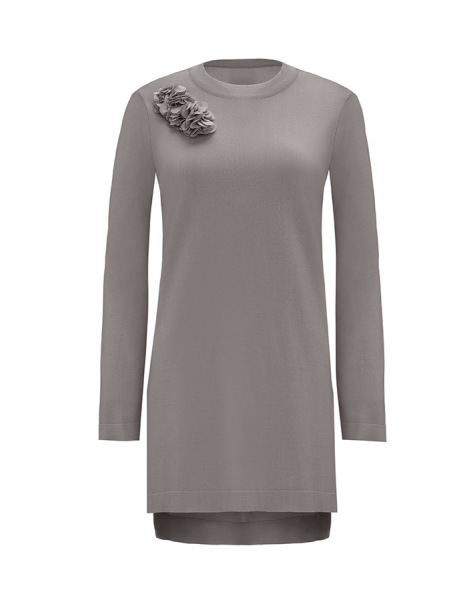 Arkası Cupro Önü Gül Broşlu Triko Antrasit Tunik