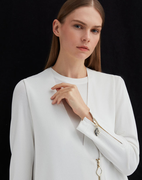 Bileği Fermuarlı Düz Renk Triko Ekru Tunik