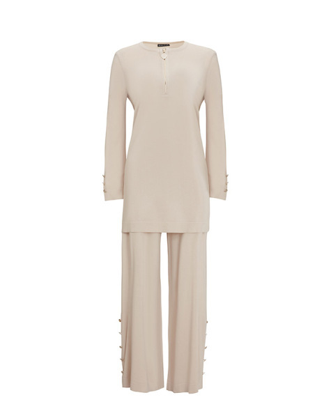 Yakası Fermuarlı Düz Renk Triko Vizon Tunik