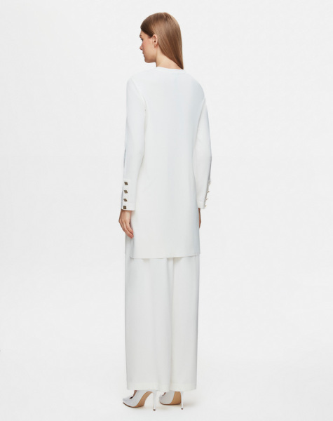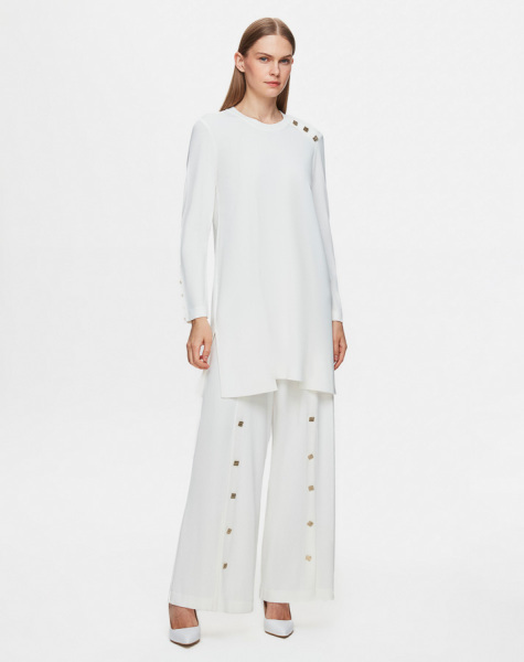 T25Y-6019 Düğme Aksesuarlı Düz Renk Triko Tunik 1012-ECRU