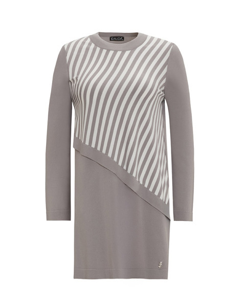 Asimetrik Kesim Çizgili Triko Gri Tunik
