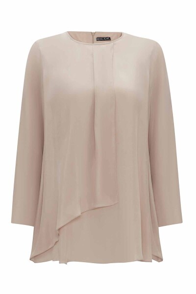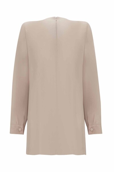 Ön Kısmı Hareketli Kesim Cupro Taş Rengi Tunik