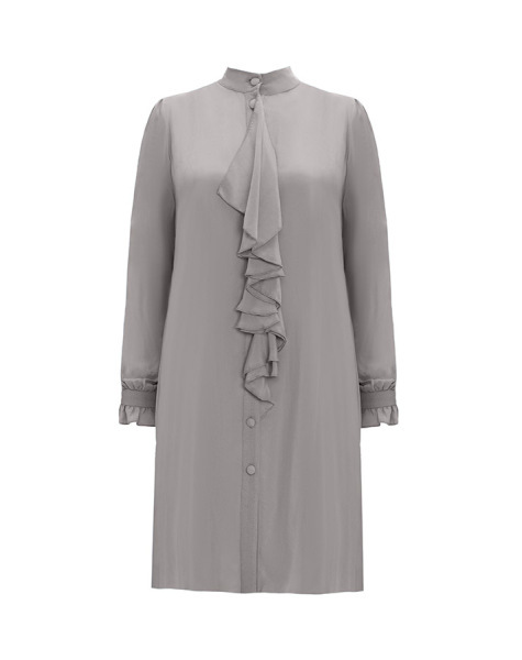 T25Y-6029 Önü Fırfırlı Cupro Tunik 1179-GREY