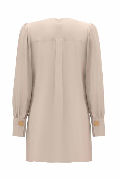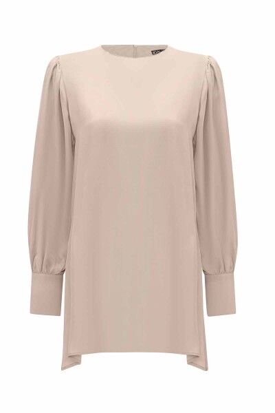 Yuvarlak Yaka Klasik Kesim Cupro Taş Rengi Tunik