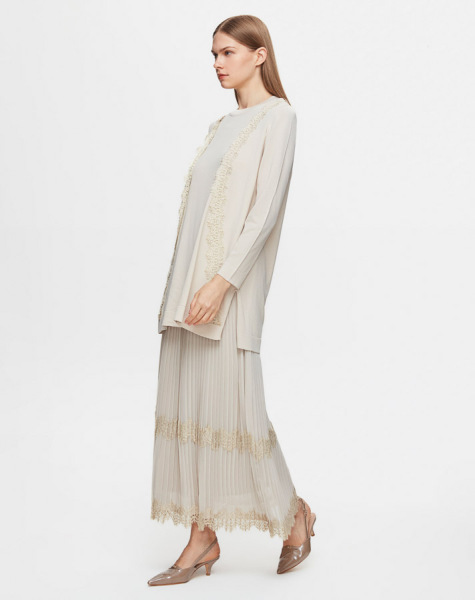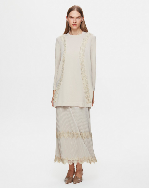 T25Y-6034 Dantel Detaylı Düz Renk Triko Tunik 1243-LIGHT MİNT