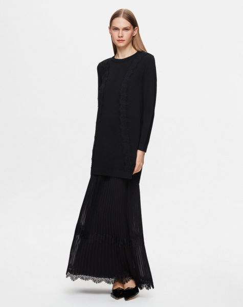 T25Y-6034 Dantel Detaylı Düz Renk Triko Tunik BLACK