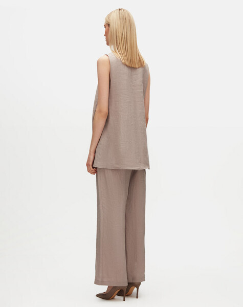 Düz Renk Cupro Kolsuz Siyah Tunik